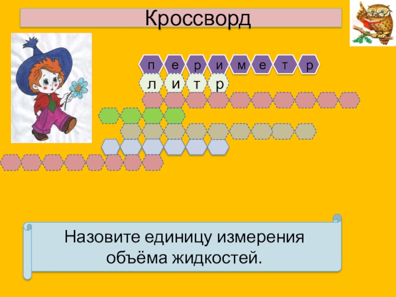 КроссвордпериметлтрирНазовите единицу измерения объёма жидкостей.