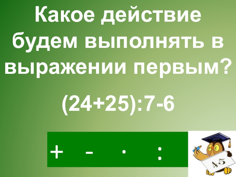 +·:-Какое действие будем выполнять в выражении первым?(24+25):7-6