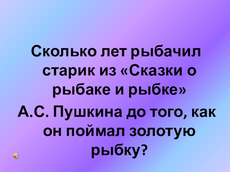 Слайд 7 Сколько лет рыбачил старик из «Сказки о рыбаке и рыбке»
