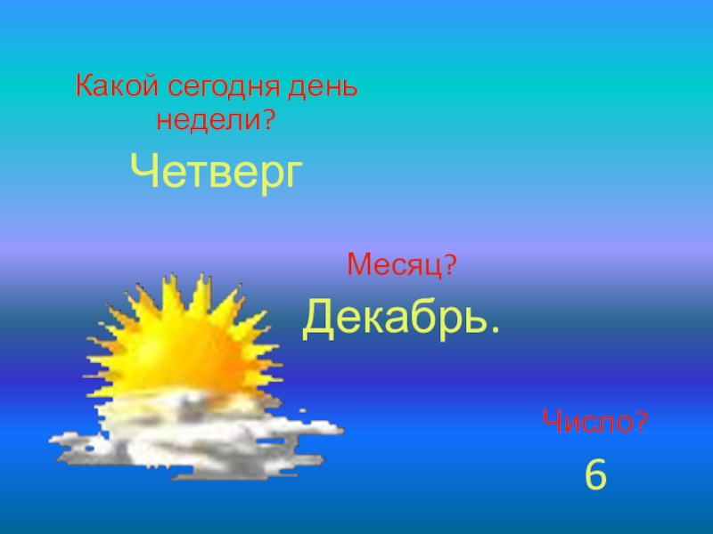 Какой сегодня день недели?ЧетвергМесяц?Декабрь.Число?6