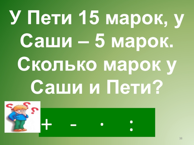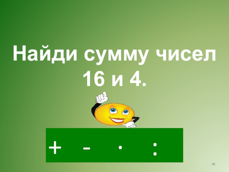 -·:+Сумма двух чисел равна 50. Первое слагаемое – 24. Чему равно второе слагаемое?