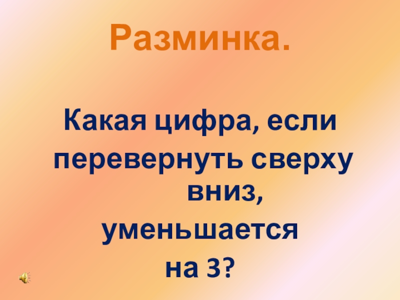 Разминка.Какая цифра, если перевернуть сверху вниз, уменьшается на 3?