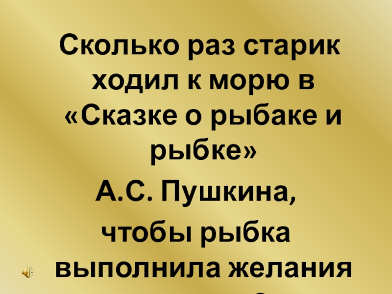 Слайд 8 Сколько раз старик ходил к морю в «Сказке о рыбаке