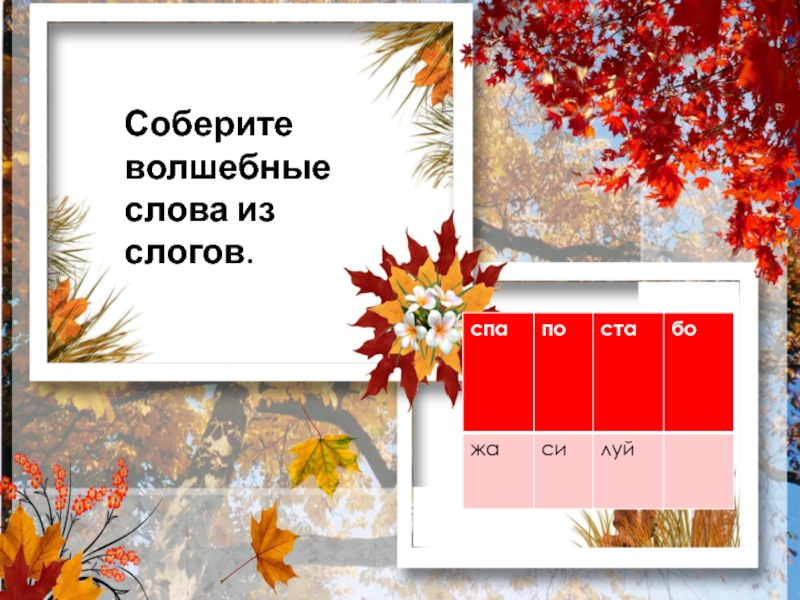 Слайд 45Соберите волшебные слова из слогов.