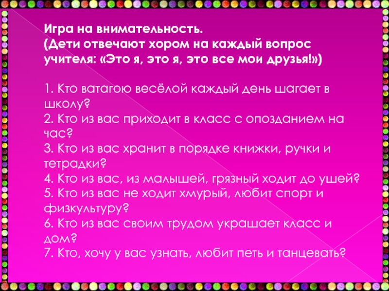 7. Кто, хочу у вас узнать, любит петь и танцевать?