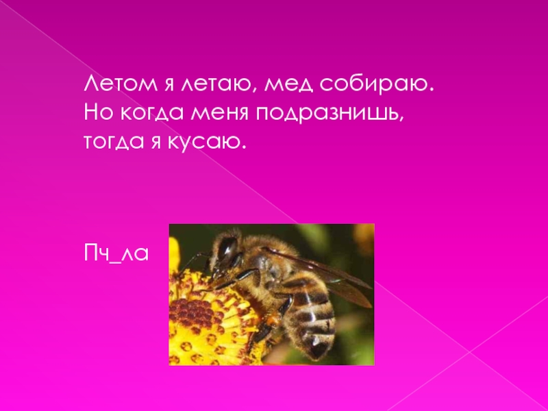 Слайд 21Летом я летаю, мед собираю.