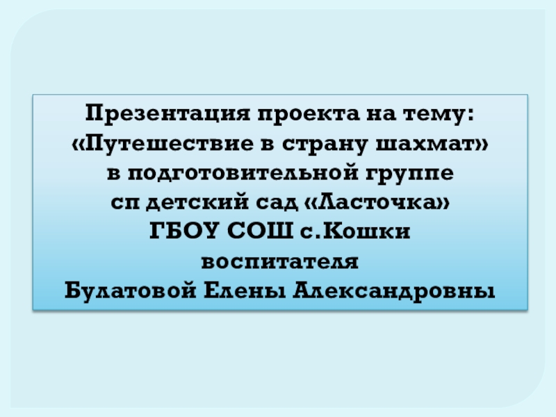 Презентация проекта на тему: «Путешествие в страну шахмат» в подготовительной группе сп детский сад «Ласточка» ГБОУ СОШ