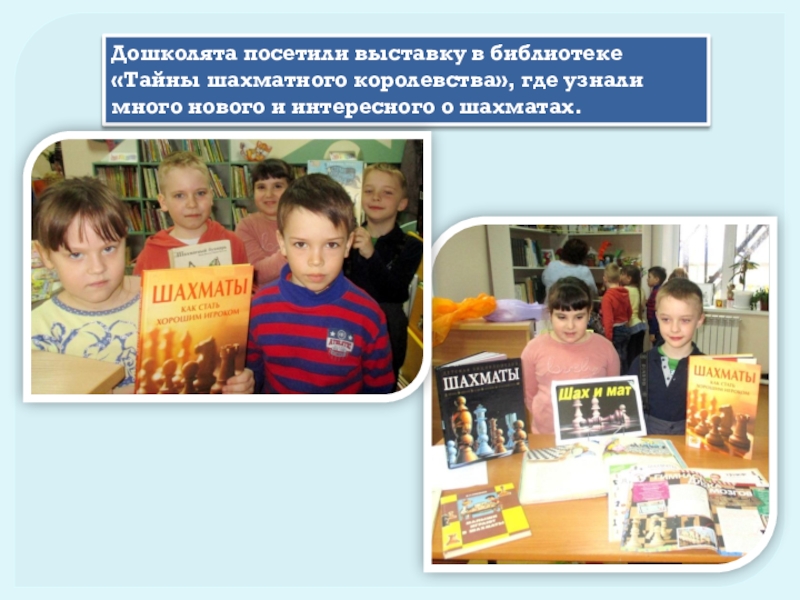 Слайд 7Дошколята посетили выставку в библиотеке «Тайны шахматного королевства», где узнали много