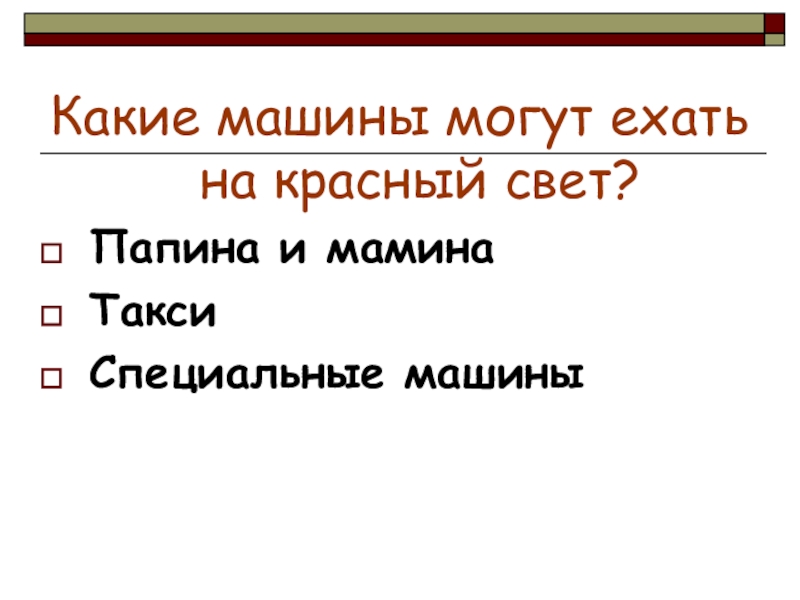 Какие машины могут ехать на красный свет?Папина и маминаТаксиСпециальные машины