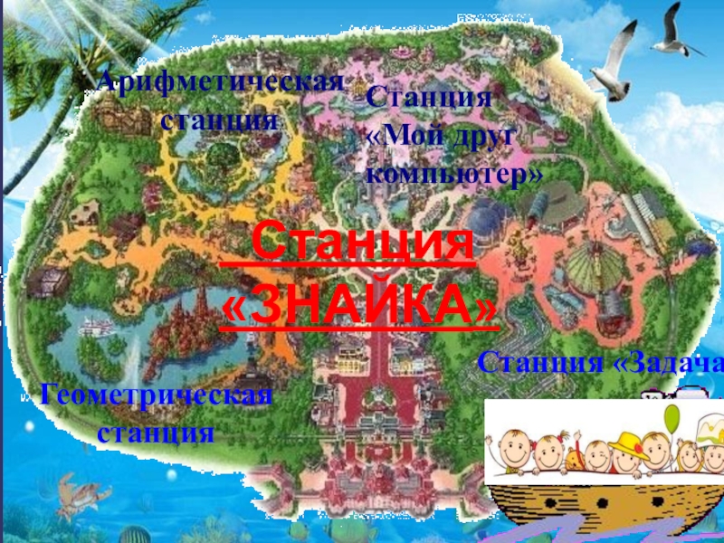 Станция «ЗНАЙКА»Арифметическая станцияСтанция «Мой друг компьютер»Геометрическая станцияСтанция «Задача