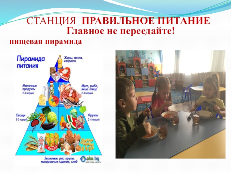 СТАНЦИЯ ПРАВИЛЬНОЕ ПИТАНИЕ Главное не переедайте! пищевая пирамида