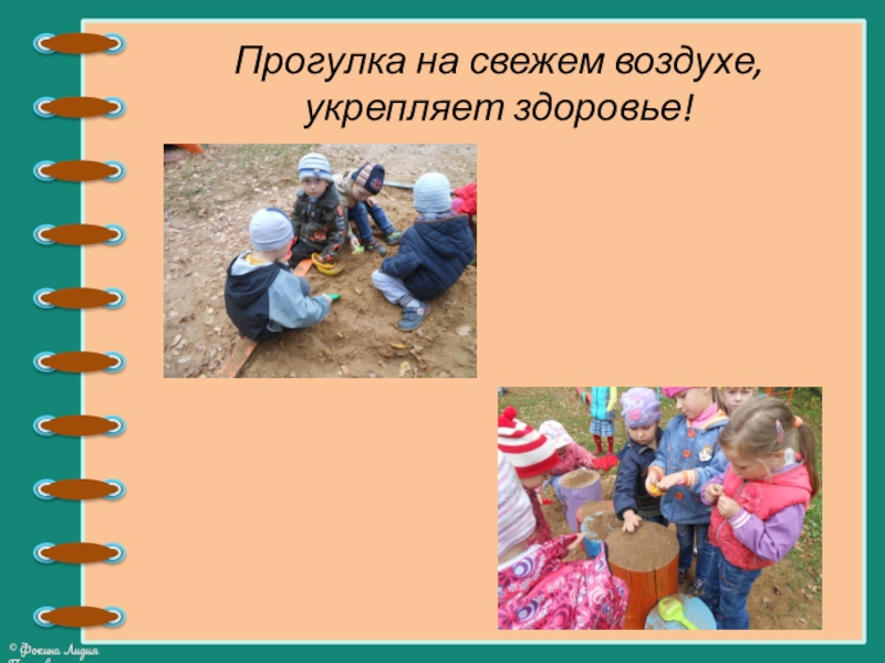 Слайд 13Прогулка на свежем воздухе, укрепляет здоровье!