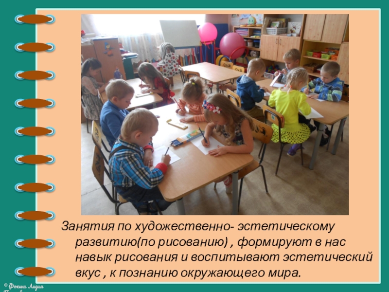 Слайд 5Занятия по художественно- эстетическому развитию(по рисованию) , формируют в нас навык