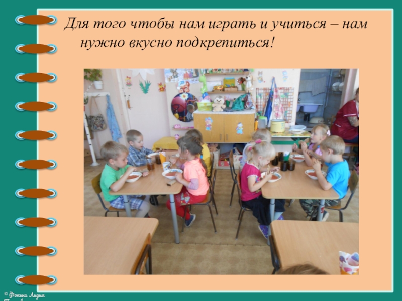 Слайд 12Для того чтобы нам играть и учиться – нам нужно вкусно