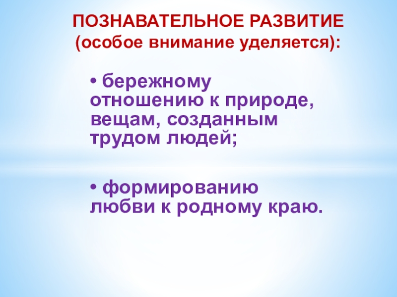ПОЗНАВАТЕЛЬНОЕ РАЗВИТИЕ (особое внимание уделяется):
