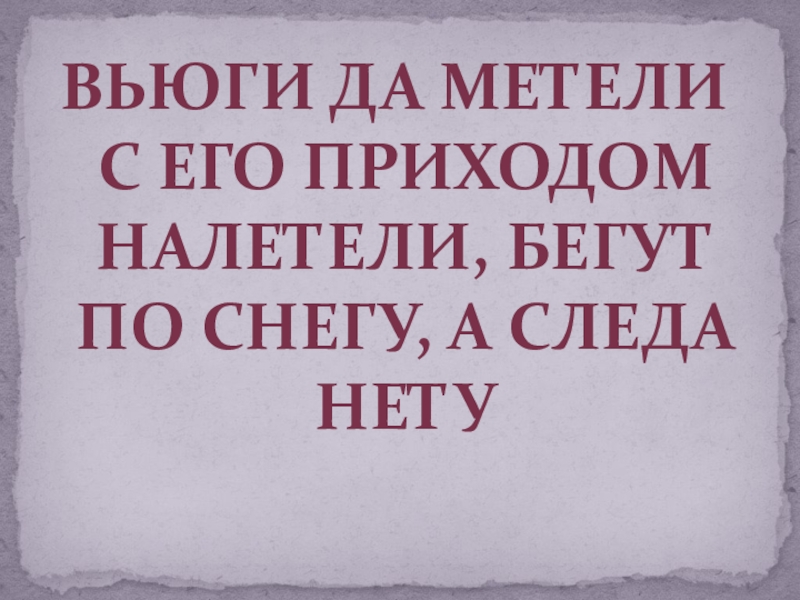 Слайд 11Вьюги да метели с его приходом налетели, бегут по снегу, а