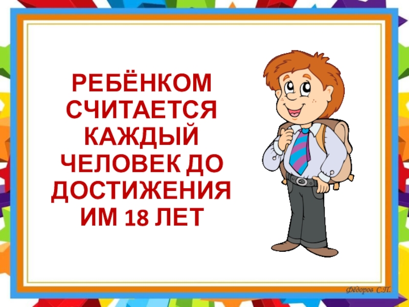 Слайд 3РЕБЁНКОМ СЧИТАЕТСЯ КАЖДЫЙ ЧЕЛОВЕК ДО ДОСТИЖЕНИЯ ИМ 18 ЛЕТ