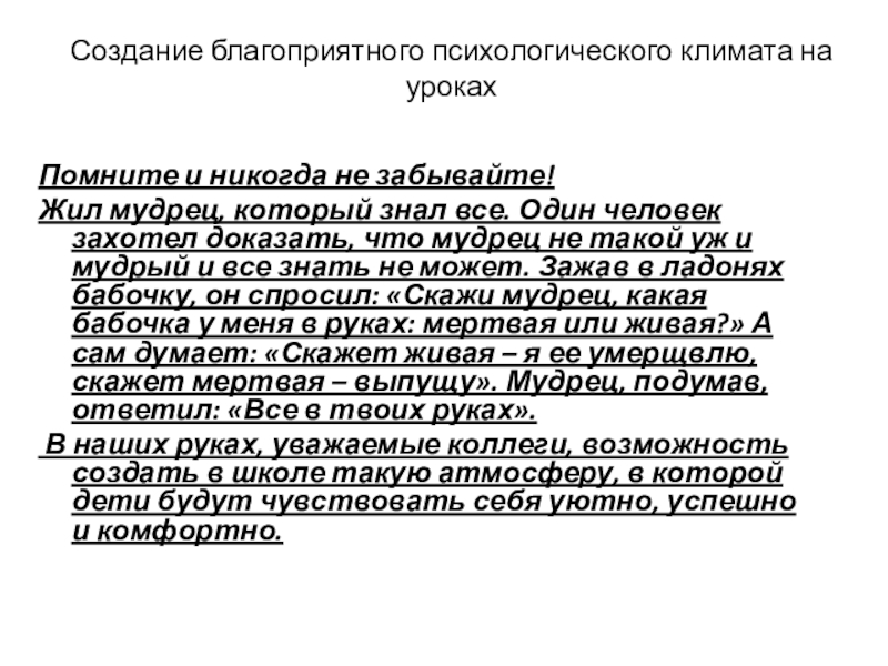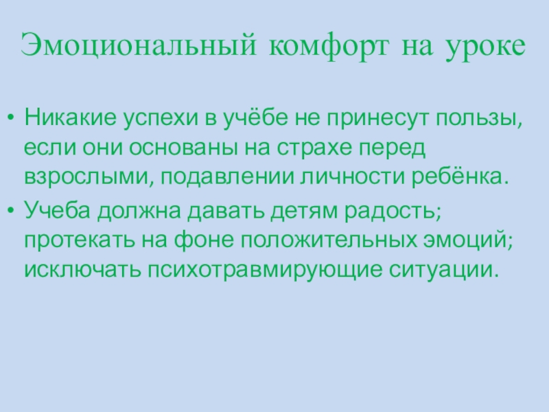 «Из всех показателей оценки школы главным следует считать самочувствие в ней человека. Школа хороша, если в ней хорошо каждому ребенку и взрослому.»