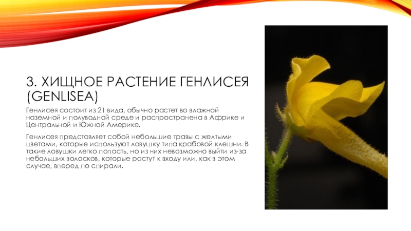 Слайд 43. Хищное растение генлисея (Genlisea)