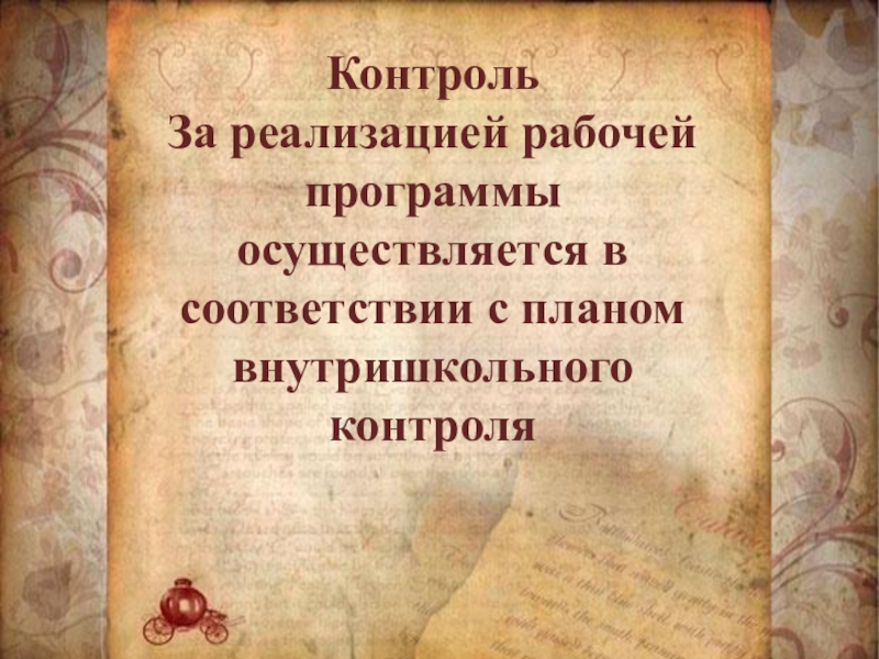 За реализацией рабочей программы осуществляется в соответствии с планом внутришкольного контроля