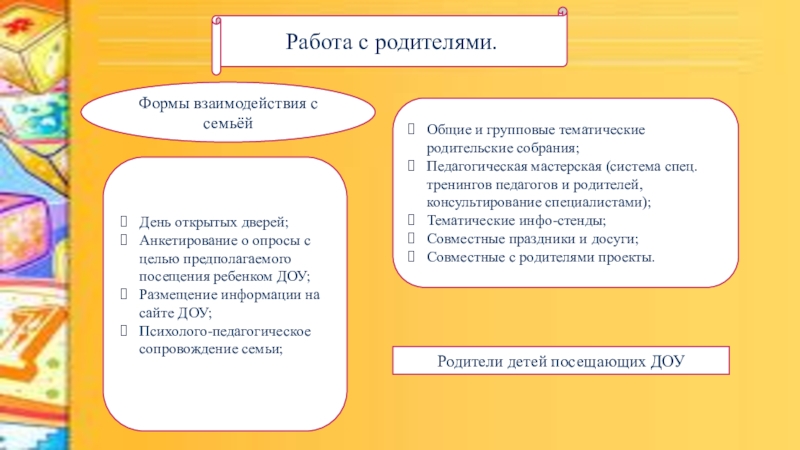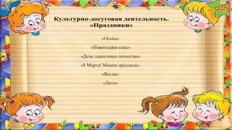 Сюжетно-ролевые игры, игры малой подвижности, театрализованные игры.