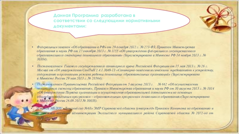 Познавательно-исследовательская деятельность: ознакомление с окружающим миром, растительный мир, животный мир, неживая природа, сезонные наблюдения на прогулке, целевые прогулки и экскурсии, ФЭМП, Д\и по ФЭМП, Д\и по экологии, Д\и по ознакомлению с окружающим миром, развитие творческого воображения.
