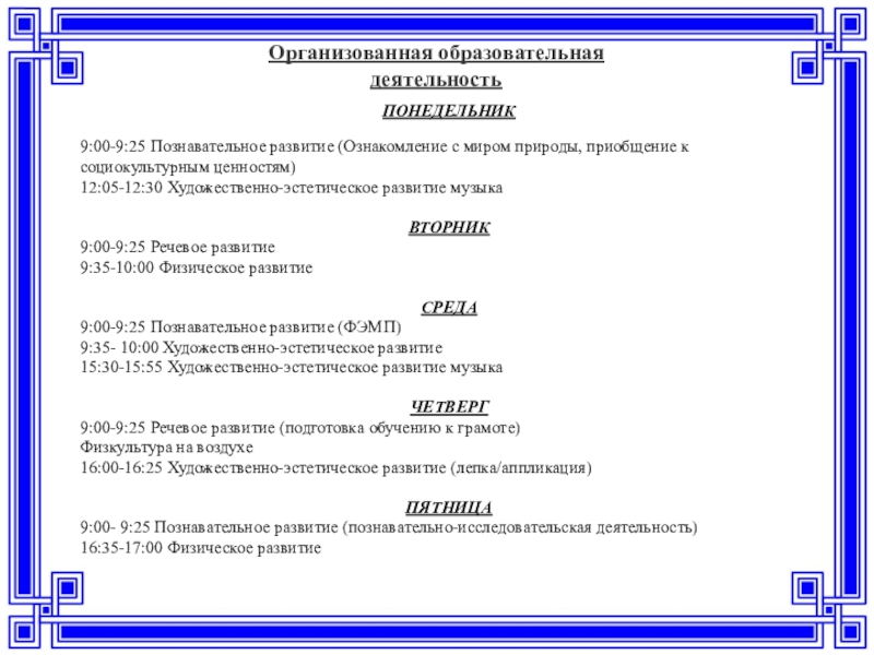 Слайд 23Организованная образовательная деятельность