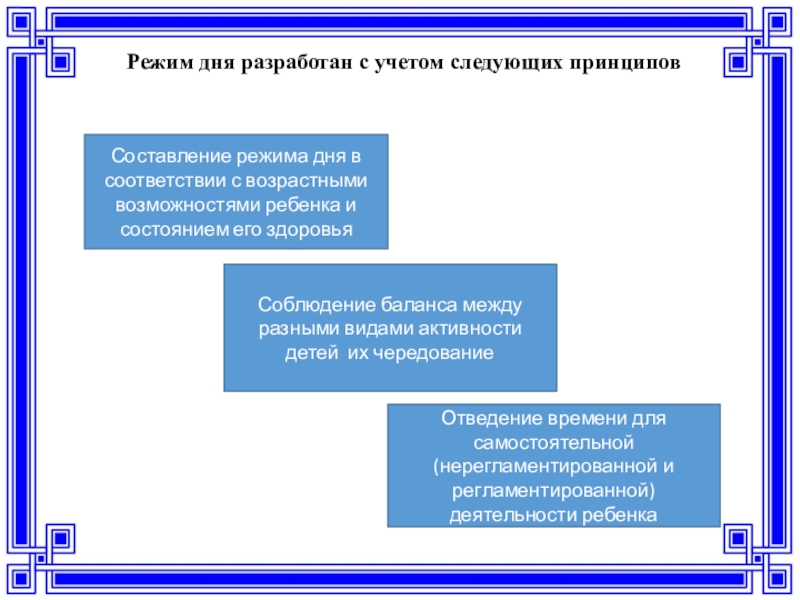 Слайд 19Режим дня разработан с учетом следующих принципов