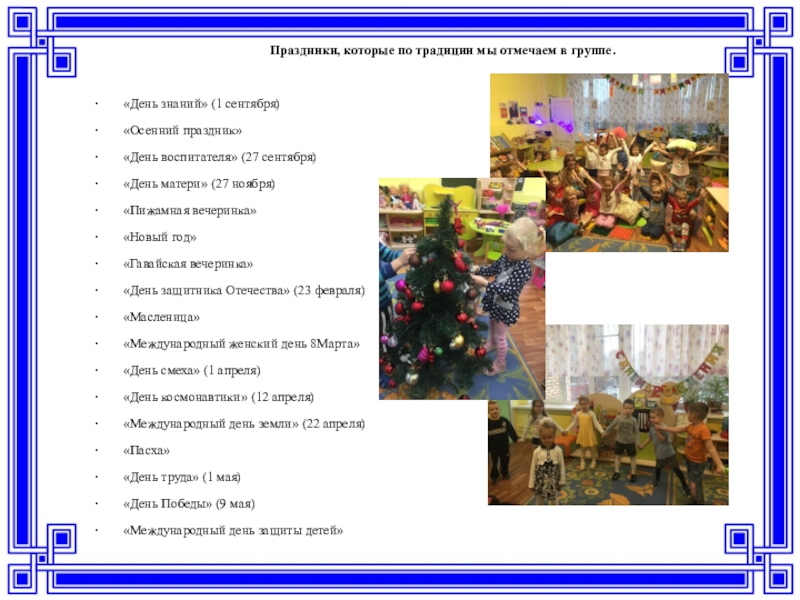 Слайд 24Праздники, которые по традиции мы отмечаем в группе.