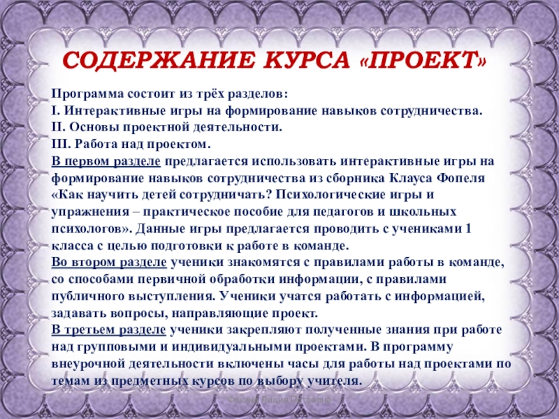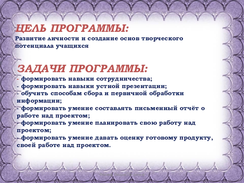 - формировать умение составлять письменный отчёт о работе над проектом;