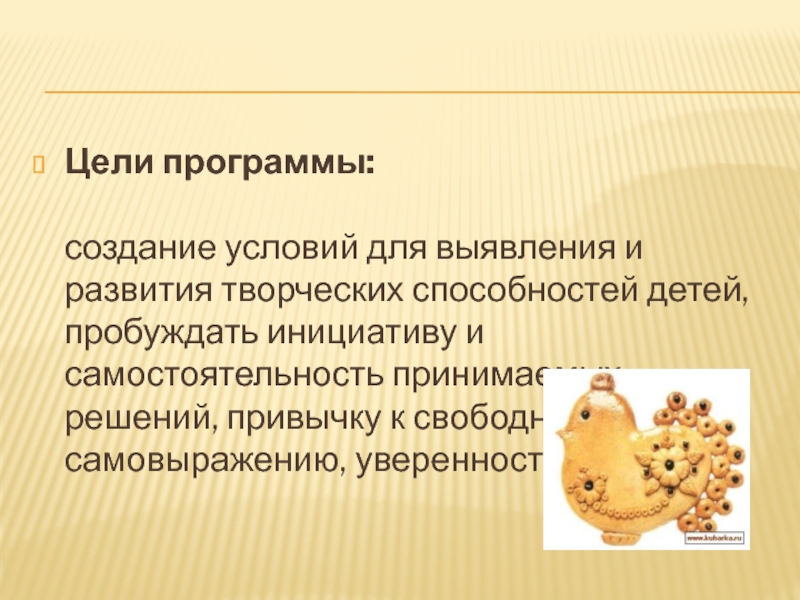 создание условий для выявления и развития творческих способностей детей, пробуждать