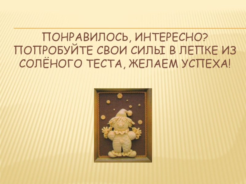 Попробуйте свои силы в лепке из солёного теста, Желаем успеха!