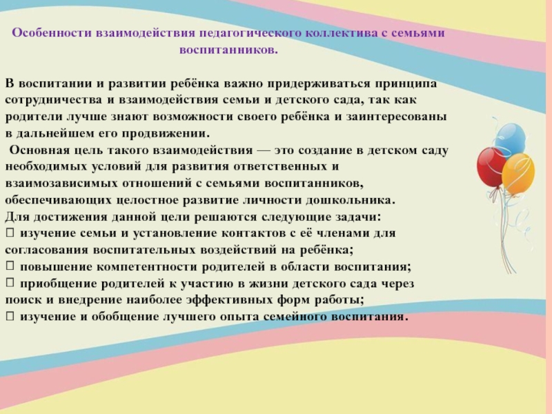 Слайд 11Особенности взаимодействия педагогического коллектива с семьями воспитанников.
