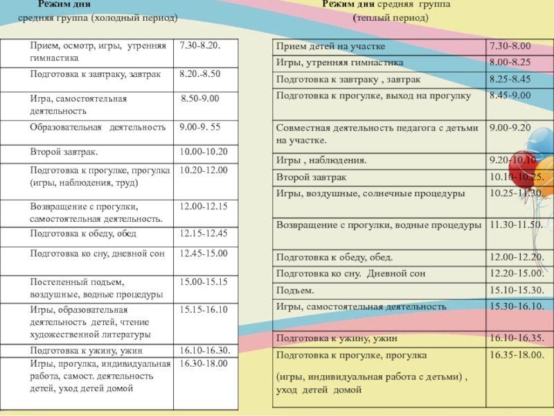Режим дня средняя группа средняя группа (холодный период) (теплый период)