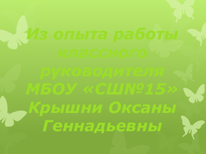 Слайд 1Из опыта работы классного руководителя MБОУ «СШ№15» Крышни Оксаны Геннадьевны