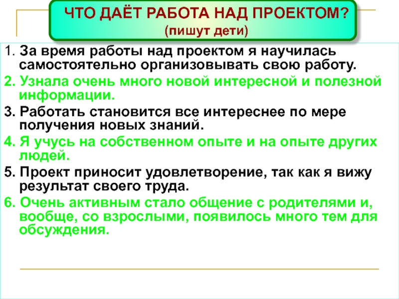 ЧТО ДАЁТ РАБОТА НАД ПРОЕКТОМ?