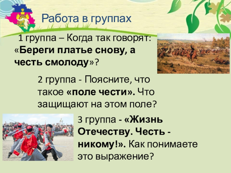 2 группа - Поясните, что такое «поле чести». Что защищают на этом поле?