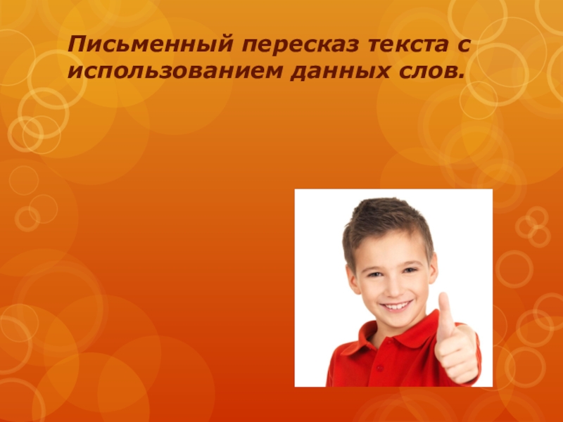 Слайд 11Письменный пересказ текста с использованием данных слов.
