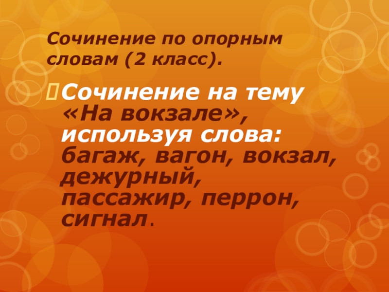 Сочинение по опорным словам (2 класс). Сочинение на тему «На вокзале», используя слова: багаж, вагон, вокзал, дежурный,