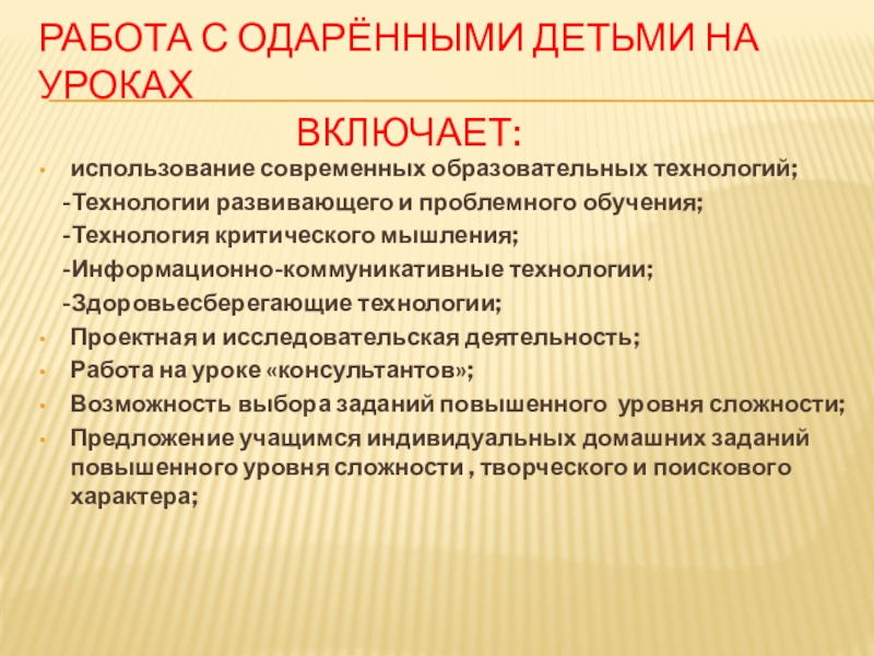 Предложение учащимся индивидуальных домашних заданий повышенного уровня сложности , творческого и поискового характера;