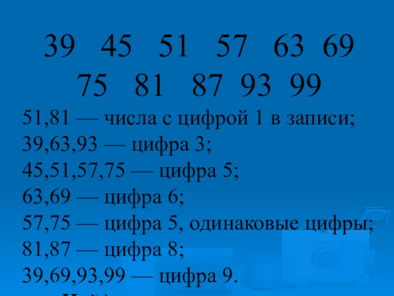 39  45  51  57  63 69 75  81  87 93 99Объедините