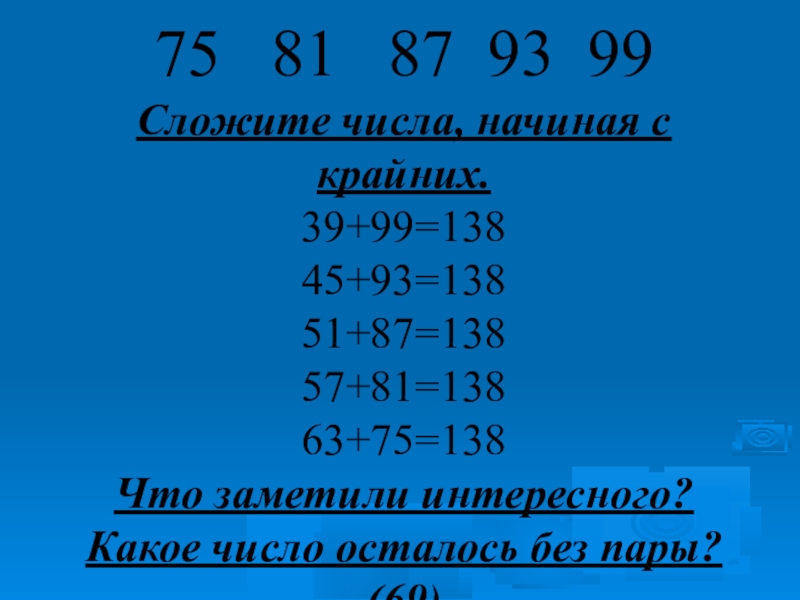 39  45  51  57  63 69 75  81  87 93 99Сложите