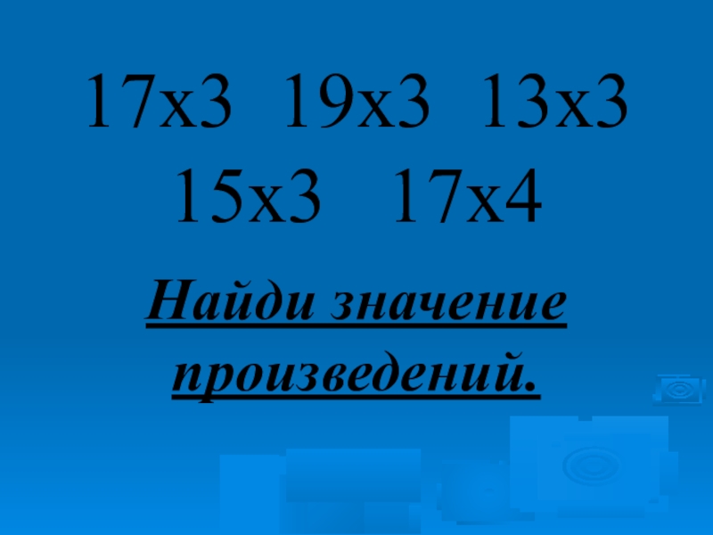 17х3 19х3 13х3  15х3  17х4Найди значение произведений.