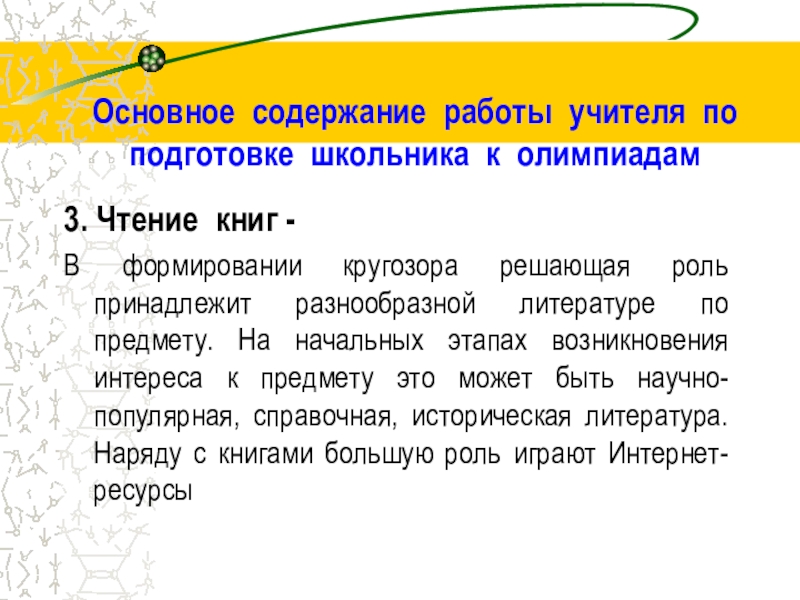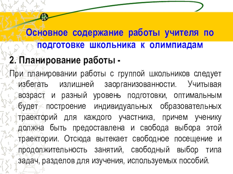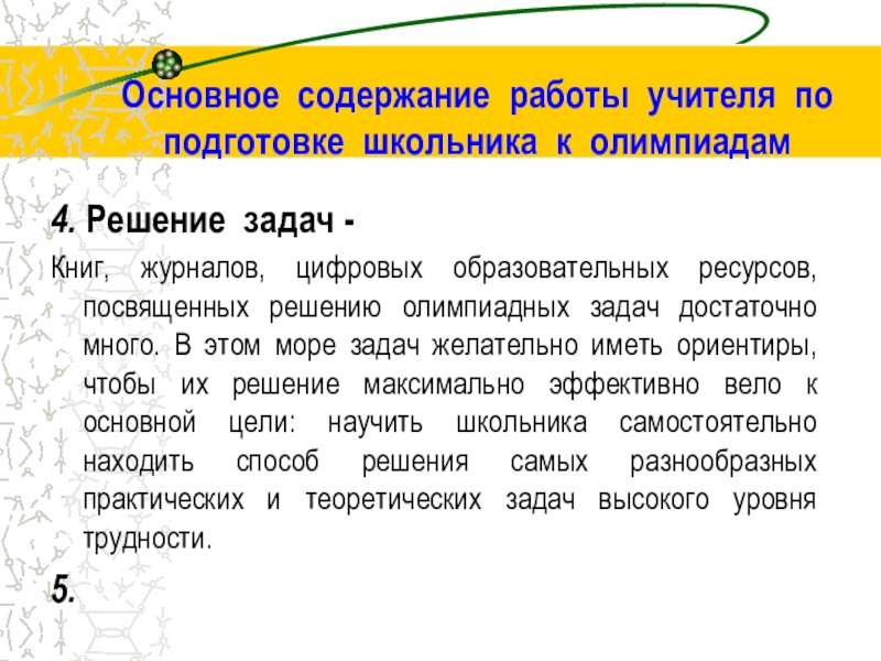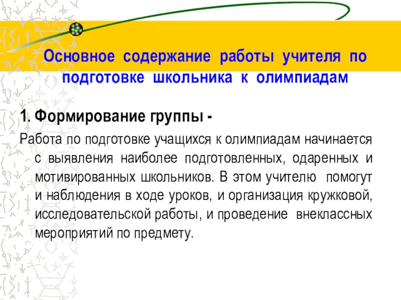 Основное содержание работы учителя по подготовке школьника к олимпиадам