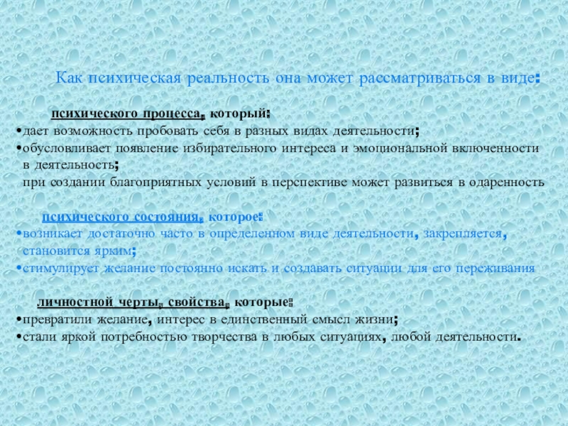 Слайд 7Как психическая реальность она может рассматриваться в виде: