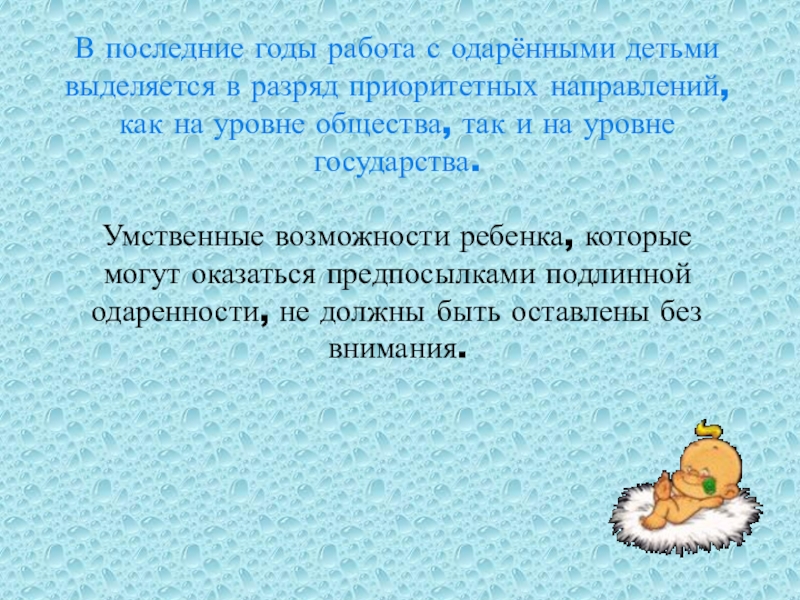 Слайд 2В последние годы работа с одарёнными детьми выделяется в разряд приоритетных