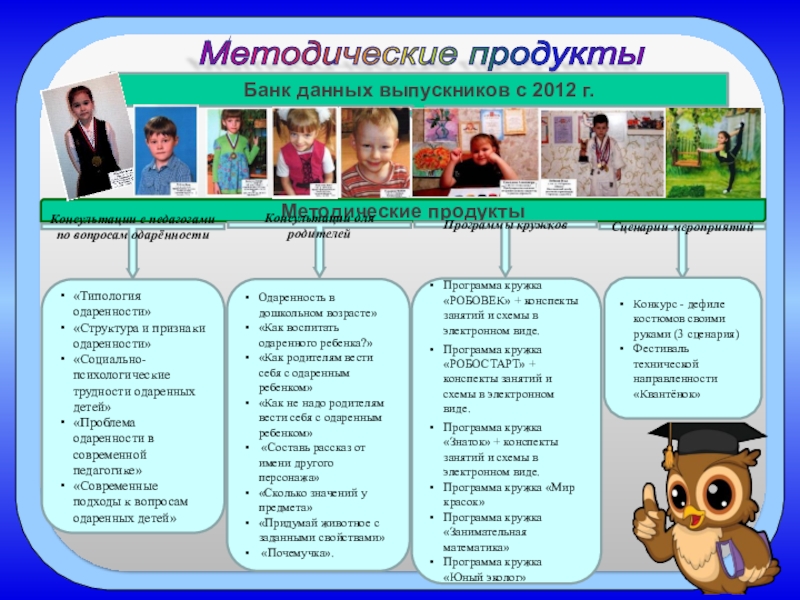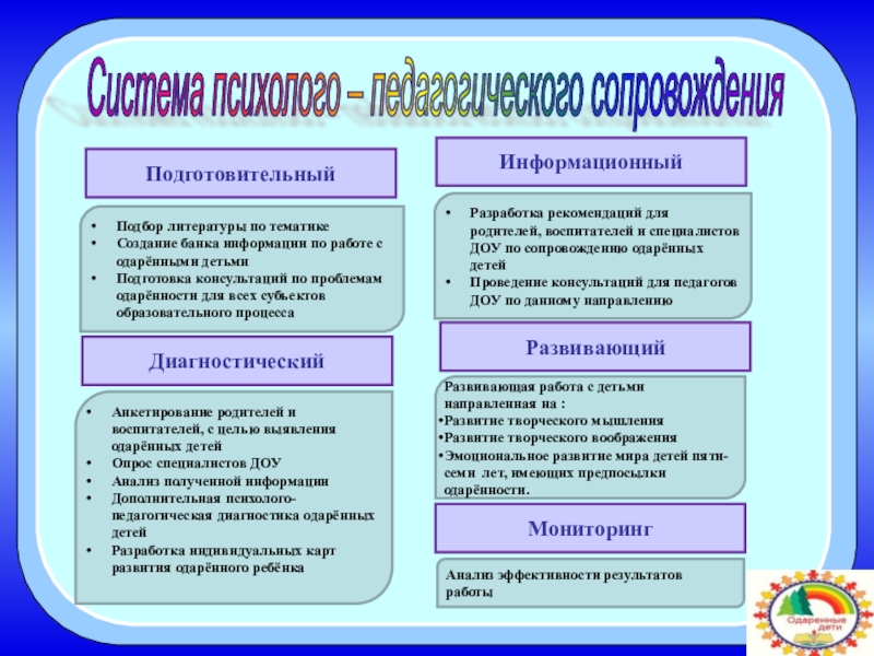Разработка рекомендаций для родителей, воспитателей и специалистов ДОУ по сопровождению одарённых детей