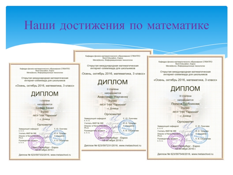 Слайд 7Наши достижения по математике