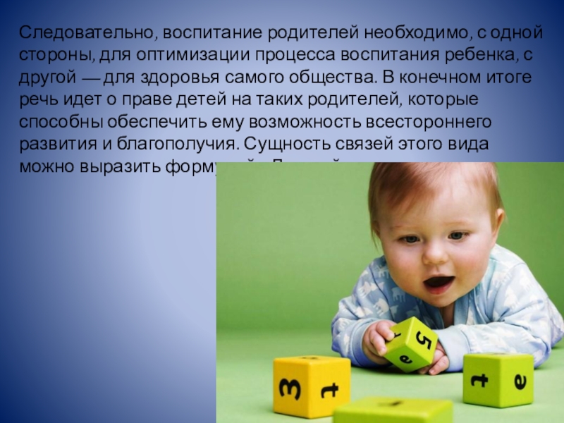 Слайд 4Следовательно, воспитание родителей необходимо, с одной стороны, для оптимизации процесса воспитания