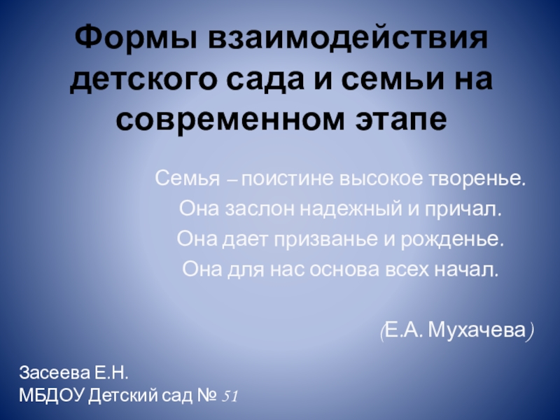 Слайд 1Формы взаимодействия детского сада и семьи на современном этапе